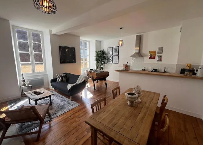 Apartmán Appartement Les Reflets Du Tournesol nabízí kompletní kuchyni i pokoje s místností na posezení, vícekanálovou televizí a bezdrátovým připojením. Eglise Notre-Dame de Mortagne-au-Perche je 300 metrů od apartmánu, zatímco Statue de Neptune je 650 metrů daleko.